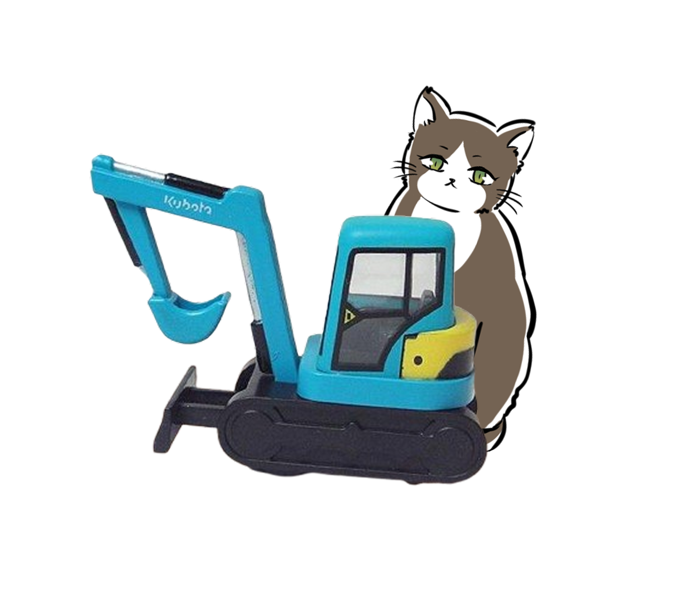 ミニショベルフィギュアを抱きかかえないでくださいよ!
